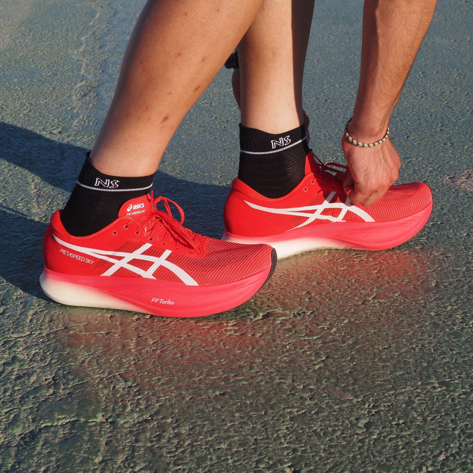 🔹 Ajuste firme y estable. La banda de sujeción en el mediopié evita que el calcetín se mueva dentro de la zapatilla, incluso en cambios de ritmo.